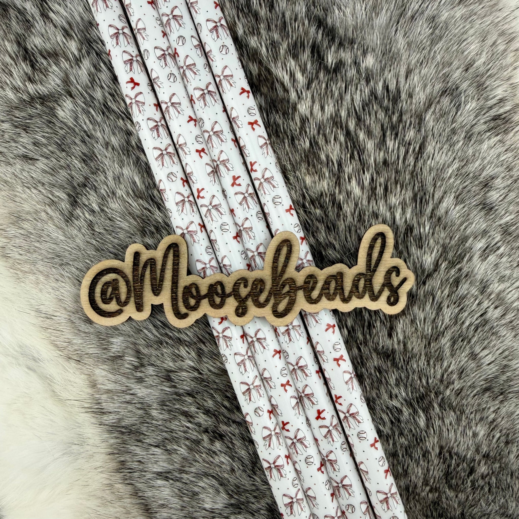 Baseball w/ Bows 40oz Plastic Straw